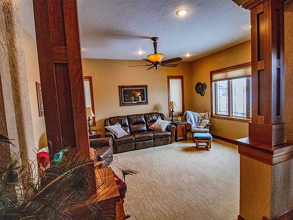 That feeling "it's so great to be home" is exactly how you will feel entering this beautifully custom designed walk out ranch located in the beautiful Bridges of Beresford Golf Development on a quiet cul-de-sac. It's charming front porch adds to the great curb appeal!!. Feature's 4 bedrooms, 3 baths, 3 stall garage, main floor laundry with drop zone off garage, special covered deck to enjoy the evenings at the end of the day plus a super large L-shaped family room with walkout patio. Upon entering you will be welcomed by gorgeous wood floors, vaulted foyer ceiling, step down living room, 9' ceilings and a fantastic kitchen with recycled glass counter tops, staggered cabinets with soft closer's & a super large island. The Master bedroom suite has stunning private master bath with dual sinks, large walk-in closet & private entrance to the deck. Close to schools, park, golf and walking paths. Great Location and a Great Place to live
