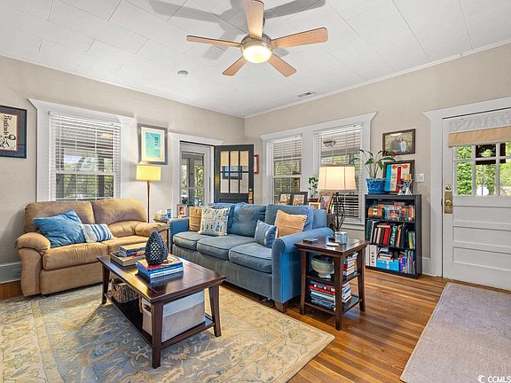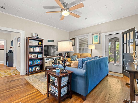 If you're looking for a home with a strong dose of coziness in the perfect location, this is it! Situated in the heart of historic downtown Conway, this 1937 cottage is just a few blocks to the vibrant and growing Downtown area. The home is on a spacious lot with room for your boat, RV, or even an addition if you choose! A front porch welcomes you inside where you'll notice the beautiful hardwood floors. The living room has lots of natural light and has a side entrance to the screened porch. The home has a formal dining room in addition to the breakfast nook in the kitchen. The kitchen was remodeled in approximately 2004 and the modern functionality was added with stainless appliances, but the historical charm was maintained with the cabinet design. The main bedroom suite with its walk in closet, private bath is surprisingly spacious. The second bedroom has a unique built in closet and shelving combination to maximize storage. The third bedroom does have a closet, but no window, so it is considered "non-conforming."  Finally, there is a generously sized laundry room that offers additional storage. Outside, there is plenty of concrete driveway, 2 detached storage buildings with electricity, and a brick patio. This home will surprise you with its space and condition, and will put you within minutes of everything that makes Conway a great place to call home!