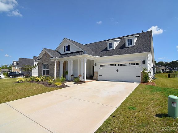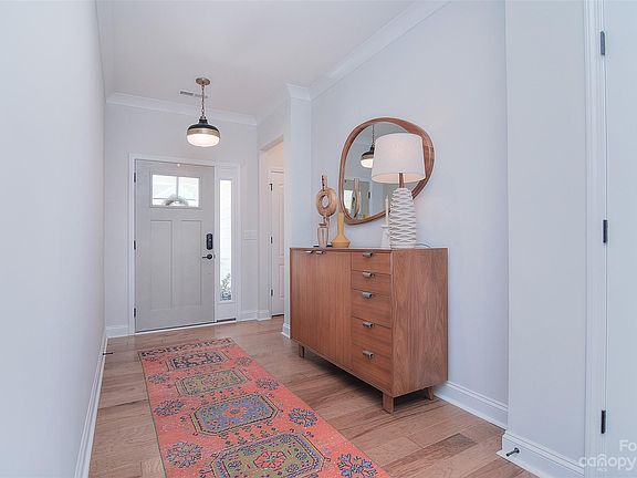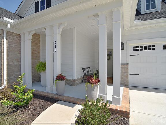 The ONE LEVEL home you have been searching for! This GORGEOUS ranch has natural light galore and the ideal layout with HIGH END touches throughout. Luxurious WOOD FLOORS throughout the home. There is a large OPEN kitchen with WALK-IN PANTRY, stainless appliances, ISLAND and RANGE HOOD. This kitchen flows easily to a truly OPEN CONCEPT great room with fireplace and dining area. Also enjoy the seconday space of the SUNROOM that overlooks the expansive lot and PAVER PATIO. Primary en suite has ample space, fabulous bathroom with SEPARATE VANITIES, oversized shower WITH BENCH and custom CLOSET system. Home also features large, secondary bedrooms, lots of closet space and a COVERED FRONT PORCH. The community offers a pool, playground, 2 pocket parks, and sidewalks throughout the neighborhood that take you all the way to Harris Teeter shopping center!