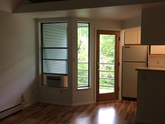 Top floor condo with two storage lofts. Wood burning fireplace, west facing deck, W/D, microwave. Covered parking. Rent includes heat and hot water. 1 year lease. Deposit $1200. Tenant pays only electricity. $40 Application Fee.
