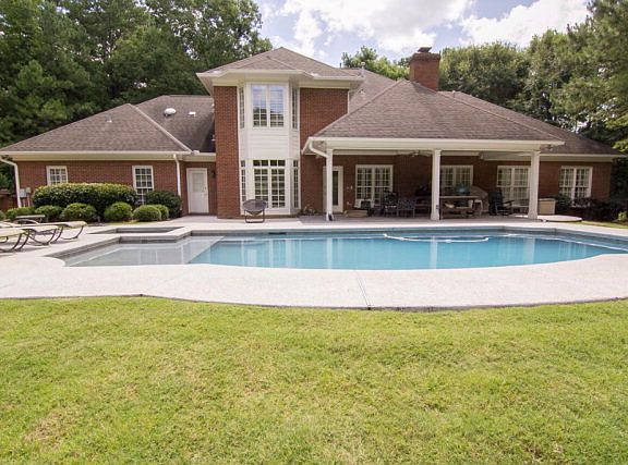 Stunning home you'll want to keep in the family! Plenty of room for everyone to enjoy, inside & out! Enter into a grand 2-story foyer. On main you have 2 living areas, a great room w/stacked stone fireplace, gorgeous chef's kitchen w/dbl oven, SS appliances, gas cooktop, & wine fridge & formal dining room. It's a perfect split-plan; the owner's suite has custom built-ins, huge closet & his/her bathrooms, yes 2 bathrooms! A bonus room is currently used as a 5th bedroom! Also on main, a 1/2 bath and a 2nd bonus room! (can be an office/craft/homeschool, etc.). You'll love the laundry room with custom-built pet-spa for your fur-babies. Upstairs are 3 additional bedrooms (including one with an ensuite), 2 more bathrooms, tons of storage, & even room to expand! Hardwood floors throughout. The outdoors is truly paradise w/covered patio, heated Gunite pool & hot tub, fire-pit, speaker system (in & out) beautiful landscaping, sprinkler system, 2-car garage and so much more.