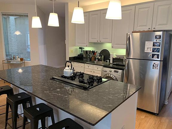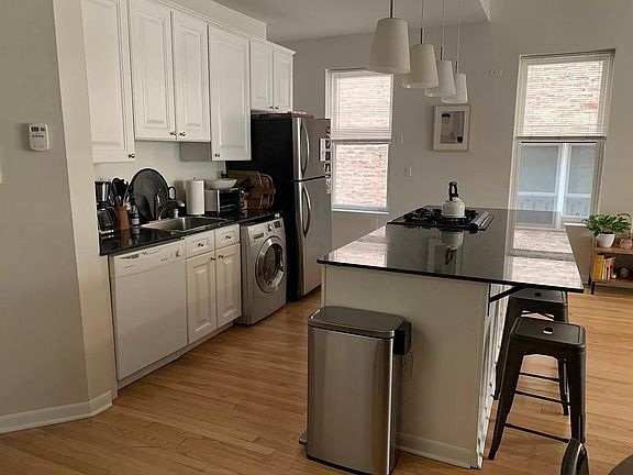 910 S. Bishop is located in the UIC/Rush neighborhood. 1/2 block north of Starbucks on the best street in the area. The unit on the 3rd floor has great light, off street parking, washer/dryer in unit, fireplace, high ceilings, LARGE bedrooms, hardwood floors. Available August 1 . Tenant pays all utilities except water and garbage. Parking is included in rent.