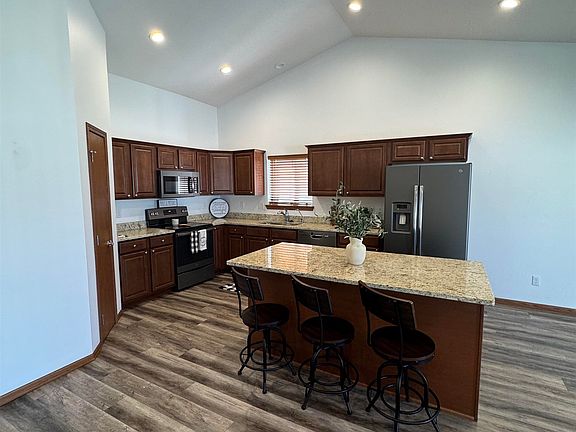 Welcome to effortless living in this move-in-ready townhome, designed with comfort and convenience in mind. Built in 2020, this home offers zero-level entry, a double car garage with an electric vehicle plug-in, and an HOA that takes care of snow removal, lawn mowing, fertilizing, watering, and garbage service—all for approximately $130 per month. Inside, the open-concept layout centers around a spacious kitchen with quartz countertops, a large island, pantry, and all appliances included, along with a reverse osmosis system for fresh drinking water year-round. The kitchen flows seamlessly into a generous living room and dining area, making it perfect for both everyday living and entertaining. A convenient laundry area with washer and dryer sits just off the kitchen. The primary suite features two closets and a private bath, while a second bedroom and bathroom provide additional comfort and flexibility. Thoughtful storage is found throughout, and the fenced back patio offers privacy and a low-maintenance outdoor space to enjoy. With modern finishes and worry-free upkeep, this townhome is ready to welcome its next owner. Call me today for a private showing!!