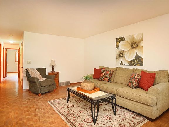 Looking for privacy with some room to roam, yet conveniently located within minutes of the highway? Look no further! Pride of ownership ranch home situated on almost an acre with a serene wooded lot. This home features 3 bedroom, 1.5 bath and an oversized 35 x 25 detached garage with 10 foot doors. Bedrooms featuring hardwood floors and laundry hookup if desired. Master large enough for a king w/ dual closets and connects to half bath. Lower level awaits your finishing ideas. Per seller, recent updates include windows, kitchen flooring, and full bath. Municipal sewer and water is an added bonus. Come take a look before this one is gone!
