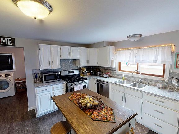 Don't miss this nicely updated home on a huge lot with creek access! This move-in ready, 3-bedroom home sits on almost half an acre. Recent updates include flooring, kitchen cabinets, countertops, backsplash, and newer appliances. Modern washer and dryer with main floor laundry. Updated landscaping gives the home a fresh look. There's plenty of room to spread out in the back yard, including a cement patio for outdoor dining or entertaining. Park in the garage or utilize the additional off-street parking spaces. Make this home yours today!