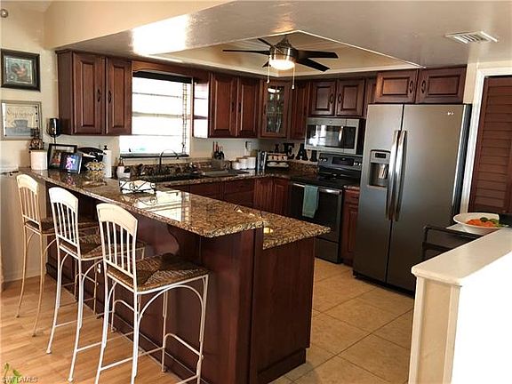Well maintained three bedroom two bath home with a two car garage in desirable SW Cape Coral location. Brand new AC unit and ductwork in 2017. Wood kitchen with granite countertops. Stainless steel appliances. Large master bedroom with walk-in closet and sliding glass doors leading to a deck area. Large fenced backyard with mature shade trees and plenty a room for a pool. Epoxy garage floor. Stained front door with decorative glass. Pride of ownership is apparent. House shows well and is ready for a quick closing. Local seller with prompt response.