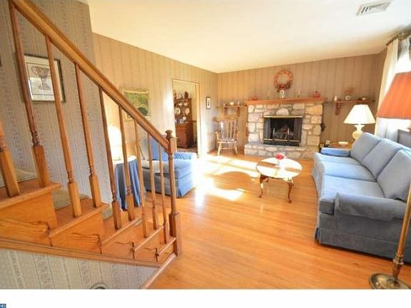 Beautiful Stone front, 4 bdrm colonial is situated on a lovely half acre lot in Hartsville Park. This home comes alive with sunlight from the many large windows that bring the colorful seasons inside. Gleaming hardwood floors flow throughout the living and dining rooms as well as three of the bedrooms. A gorgeous stone fireplace in the living room and the brick fireplace in the family room add warmth and ambiance to each room. The chef of the home will enjoy cooking on the gas range and have plenty of cabinet space and a pantry for the tools and ingredients. The upper level features a lovely master bedroom with his and her closets and master bathroom with walk-in shower, a hall bathroom and three spacious bedrooms including one with a deep closet with extra storage and one with access to the attic. Outside, a three-season sunroom overlooks the beautiful grounds. This home also features economical gas heating and hot water, replacement windows, 200 amp electrical service, and additional room in the basement.