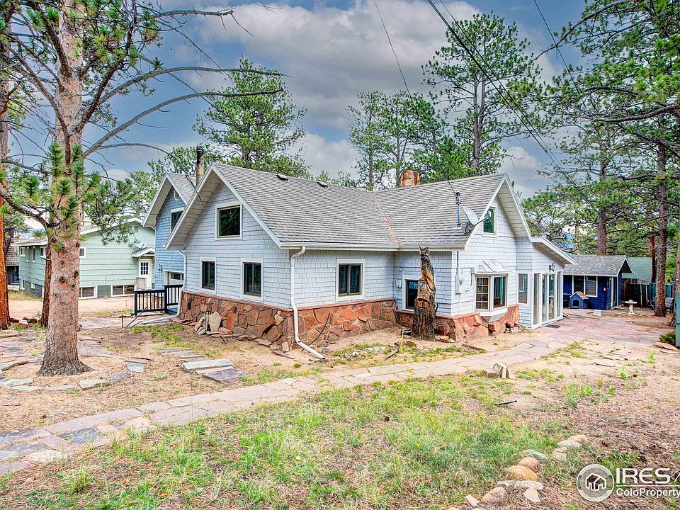 Now's your chance to own not one, but two homes in the heart of Estes Park. A spacious main residence plus a charming guest cabin, perfectly positioned on a beautiful, wooded lot near downtown and Rocky Mountain National Park. Whether you're dreaming of a full-time mountain retreat, a multigenerational getaway, or a smart income opportunity, this property checks every box. Step inside and discover how traditional Rocky Mountain design meets a thoughtfully crafted contemporary addition. The original portion of the home, built with custom-milled knotty pine walls and ceilings, exudes warmth and nostalgia, a true nod to Estes Park's rustic roots. Wander through the cozy main level and up to the lofted A-frame bedroom with built-ins and bonus den or office space. Then, seamlessly transition into the modern upper addition, where vaulted, wood-paneled ceilings and natural light bring a sense of calm and sophistication. The primary suite is a spacious retreat with dual walk-in closets, a luxurious walk-in shower, double sinks, and a private water closet. A second bedroom opens to a covered deck, the perfect spot to breathe in crisp mountain air or take in the view before heading down to the stone patio and yard below. Open-concept kitchen features generous wood cabinetry, modern appliances, and a large counter island for easy entertaining. The adjoining dining area and living room with a floor-to-ceiling stone fireplace create a natural gathering place for cozy winter nights.And then there's the sunroom! Bright, warm, and inviting, where you can sip your morning coffee surrounded by pines, or tend to your plants in a space that feels connected to nature year-round. Just steps away, the 448 sq. ft. guest cabin is a delightful hideaway with a living area, kitchen, dining nook, bedroom, and 3/4 bath. It's perfect for hosting friends and family, offering a private workspace, or generating rental income.