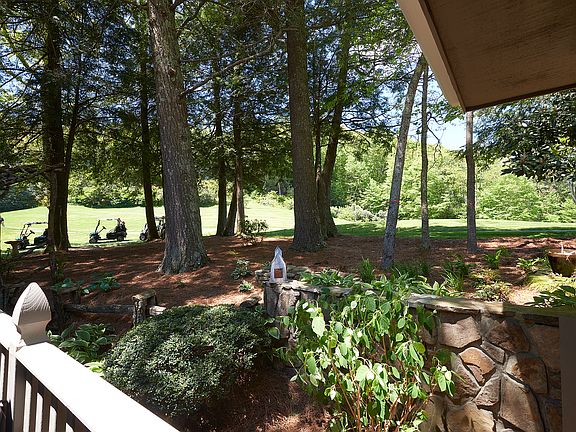Upscale, one level home fronting the 5th hole at Highlands Falls Country Club. Home features a large living/dining room with vaulted ceilings and a stone fireplace. Living space extends out to an all-season covered deck that walks out to the golf course. The master suite has deck access and a large bathroom with His and Her vanity, jetted tub and tiled shower. The two guest bedrooms are on a separate wing of the house, one having access to the deck. The kitchen is ideal for entertaining with lots of counter space and storage, a breakfast bar. Multiple outdoor spaces to enjoy including the covered and open decks, great fire pit space in the front, and even a fenced area for the pets. This home has a great setting and is the ideal year-round or vacation home. With membership to Highlands Falls Country Club, you can also enjoy the 18-hole golf course, new fitness center, fully renovated club house, new croquet court, swim and tennis center, and a pavilion at the signature waterfall hole. A great opportunity. By appointment only. Furnishings are negotiable. Buyers agents are welcome.