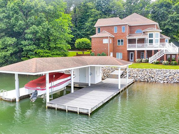 Tranquil location on Smith Mountain Lake. This well built brick house is just what you are looking for to make memories at the lake with your family and friends. Situated on a level point lot on a quiet part of the Blackwater, this home is spacious and comfortable. Plenty of bedrooms and baths for everyone to come and enjoy being together! Or, great for full time one level living on the entry floor with a two story open great room and the master bedroom, office, kitchen and laundry. The dock is ideally located just steps away and to the side of the house so it's easy to get to, but out of the way of the fabulous wide water view. The yard between the house and lake is perfect for relaxing or playing games.