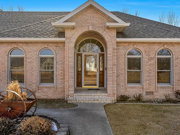 This beautifully maintained custom-built brick home, constructed in 2003, is truly move-in ready with numerous updates, including flooring and fresh paint throughout, a brand-new heat pump system (2024) with a 10-year warranty, new gutters (2024), and ductwork cleaned in 2025. Situated on a double lot, this one-level home offers 4 bedrooms (1 non-conforming) and 3 baths, along with thoughtful details such as Marvin custom windows, oak interior trim and doors, 5'' gutters, and thicker exterior walls. The spacious kitchen features stainless steel appliances, tiled countertops, a butcher block center island with a vegetable sink and disposal, a walk-in pantry, and a cozy breakfast nook, while the formal dining area, currently used as a second living space, provides flexible options. The master suite impresses with a double tray ceiling, large ensuite bath with dual vanities, a whirlpool tub, walk-in shower, and a spacious walk-in closet, while an additional ensuite bedroom adds convenience. The home also includes ceiling heaters and built-in night lights in all bathrooms, two hot water heaters (replaced in 2020 and 2021), and a walk-up attic with approximately 200 sq. ft. of floored storage. The oversized 3-car garage offers insulated 10-ft-wide doors, a heated/cooled workshop, built-in air filtration for woodworking, and hot water access, and the expansive driveway provides parking for 10+ cars. Recent upgrades include a 30-year shingle roof (2019), a new microwave (2018), a new dishwasher (2020), and a storage building with electricity. Outside, enjoy the covered patio overlooking the large yard, perfect for relaxing or entertaining. Conveniently located near I-44, this meticulously cared-for home is packed with quality craftsmanship and modern updates--pack your bags and move right in!