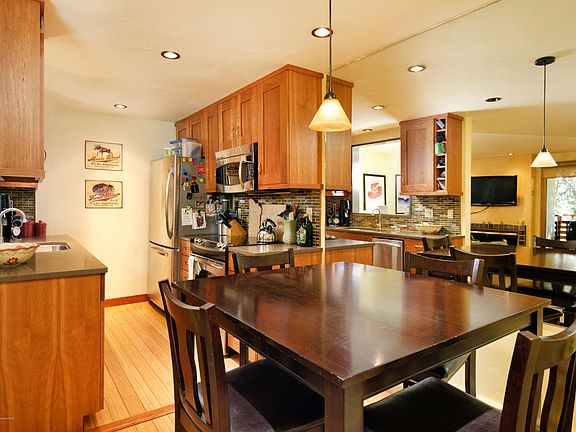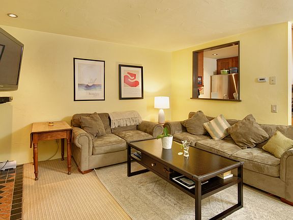 Charming south-facing, two-bedroom condo located in Aspen's West End. A short distance to the Music Tent, Aspen Meadows and Institute, golf course, and numerous hiking and biking trails. Easy access to Aspen core and bus stop right out your door. Open floor plan, shaded deck, wood-burning fireplace, stainless steel appliances, washer, and dryer, on-site parking, and low HOA dues. Dogs allowed for owners and renters.