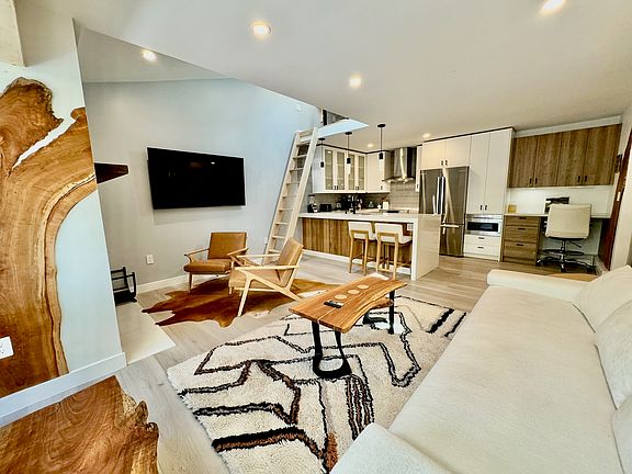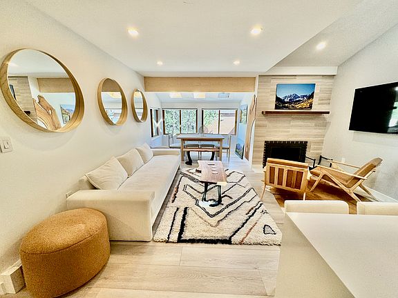Brand New Fully Renovated 1 Bedroom + Second Loft Bedroom/office, New EVERYTHING. Open, well lit, quiet, cool, and stylish. Modern Art with Aspen landscapes and animals, Custom Cherry, Ash, Walnut wood designs with all wood shipped from Owners sawmill in Shenandoah Valley Virginia. State of the art kitchen and bathroom with steam shower, heated towel rack and heated floors. "Grandfathered in" rare wood burning fireplace. Loft is convertible mini office and bedroom with full wardrobe cabinets. Sunroom is flooded with light. Three separate work spaces. watch video of unit on you tube at 'aspen condominium rental rsm' open