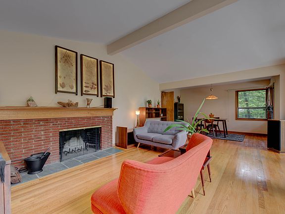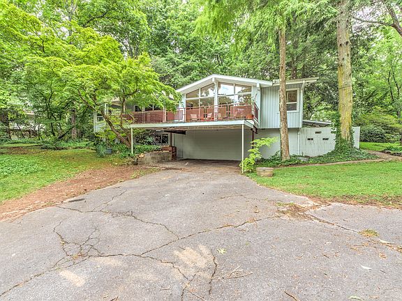 Here is the privacy with city convenience that you have been looking for! 8.32 acres in Oak Ridge with unique mid-century modern home. Home has expansion potential with over 1400 square feet of unfinished basement. Beautiful hardwood floors and large vaulted great room with cathedral ceilings. Three bedrooms upstairs with retro baths. Newer roof and new HVAC. Large eat-in kitchen. Two workshops, wood stove and extra room for a 4th bedroom. Two patios and established perennial gardens and a level back yard.