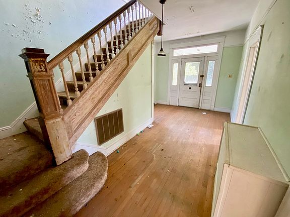 There is great potential in this classic fixer-upper in Crewe. This roomy two bedroom, two bath home is ready to be refurbished into the beauty it once was. Step in to the foyer that is spacious and features a sturdy oak staircase. The living room and dining room feature pocket doors and are both large and accommodating. The big kitchen could be refinished into a great place to prepare the family meals. Upstairs boasts two large bedrooms, full bath and an additional clothes room that features shelving clothes racks and washer and dryer hookups. There are wood floors, high ceilings and ornamental trimming throughout. There is also dual zone heat pumps and central AC that worked the last time the home had power. Make plans to see this investment opportunity today. SOLD AS IS.