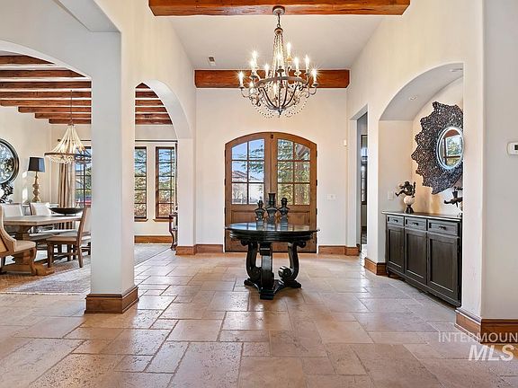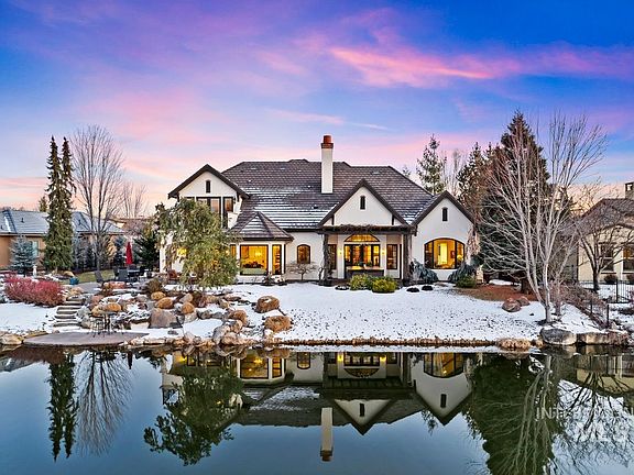 Gorgeous home for sale in one of the most sought after neighborhoods, The Shores. Built by Northern Construction & Perfectly poised on a pond with views of the mountains, this custom home embodies lavish designs & luxury T/O. From the beautiful walnut floors to the solid wood beams, no details have been overlooked. This home offers Radiant heated floors on the main floor, master bath steam shower and an oversized Therapeutic Bathtub. Perfect entertaining home! Enjoy Apps in the gourmet kitchen, have dinner in the formal dining and end with a night cap in the formal living room in front of the cozy fireplace. The landscape is so gorgeous and lush in the spring & summer, you will want to spend every moment in your backyard. While your back there, take in the views or fish from your private beach. The Shores offers a community clubhouse, tennis & basketball court, infinity pool & access to walking trails, the river & greenbelt. Close to downtown Eagle, Lakemoor shopping center, Banbury golf course & The Village