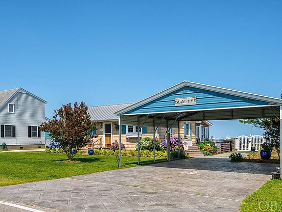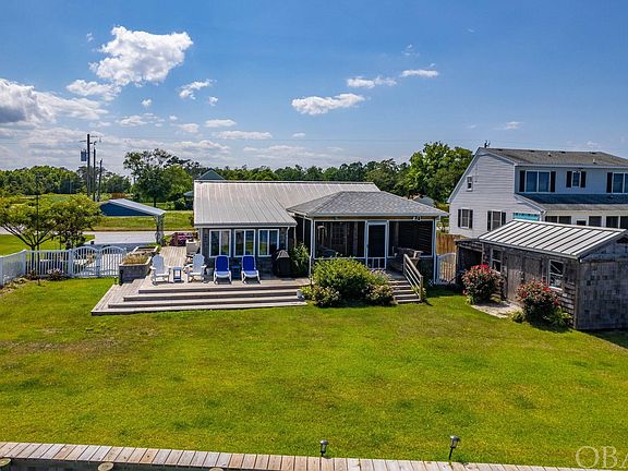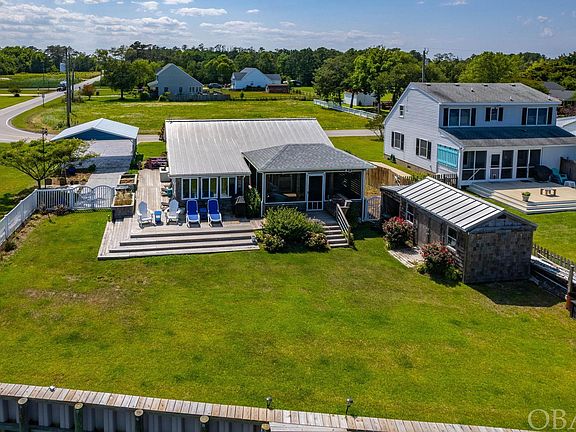 This enchanting soundfront bungalow in the historic community of Waterlily will simply WOW you with its unparalleled water views that stretch for miles over to Currituck's northern Outer Banks showcasing the beloved Currituck Lighthouse. Prepare to be totally captivated by the sheer adorableness of this delightful 2-bed, 1-bath cottage with its bright and charming ambiance and amazing top-notch upgrades. Every room offers a unique and delightful experience including original refinished oak floors in the bedrooms, barn door, walnut front door, ship lap and beadboard accents! The open living and kitchen area provides a spacious and inviting atmosphere for relaxation and entertaining. Wait till you see the gleaming live-edged slab counter, or just imagine cozying up to the beautiful custom-tiled fireplace while enjoying the mesmerizing picturesque water views. All appliances are modern and top-of-the-line - an induction range with a convection oven, an undercounter water filter for the refrigerator's ice/water dispenser (so no expensive refrigerator water filters to buy), Samsung dual wash set washer and dryer (washer is front load AND small top load for delicates, and dryer also has a separate top load with a dryer rack for sweaters, tennis shoes or delicates). The property is even serviced by an on-demand Rennai water heater! Step outside and discover a brand new vinyl bulkheaded oasis with a private dock and jet ski lift with remote, perfect for indulging in water activities. Unwind on the spacious sun deck, take an outdoor shower with the custom surf board showerhead, or relax in the shade of the screened porch. Experience the ultimate convenience with a large storage shed and even a Tesla charging port for your electric vehicle. This truly is a haven where charm, comfort, and outdoor enjoyment seamlessly blend together. Don't miss the opportunity to call this adorable bungalow your own.