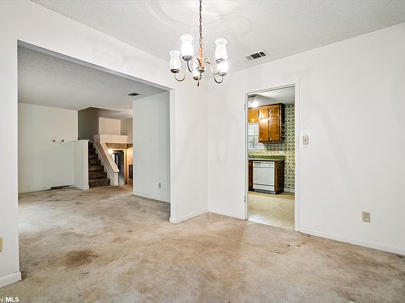 Just Back on the market due to BUYER DEFAULT. Investors and handymen will want to take advantage of the great price point on this 2064 square foot home on large tree covered 100’ X 250’ lot in the heart of Daphne. Trilevel living with 4 bedrooms and three bathrooms. The family den is located on the lower level with access to the back yard and has one of the baths also located on that level. The main level has the living, dining, kitchen, and breakfast area plus a flex room that could be the 4th bedroom or a home office with separate entrance. Walk up a few stairs and the master bedroom and bath and other 2 bedrooms. Please use showing time to arrange appointments and be sure to secure property when leaving. Use caution accessing the upper deck may not be secure. The termite contract is for retreat only. Home has been vacant for some time and needs work, so don’t miss the opportunity to bring your vision and upgrade to something newer. Call today to view the property. LISTING BROKER MAKES NO REPRESENTATION TO SQUARE FOOTAGE ACCURACY. BUYER TO VERIFY.