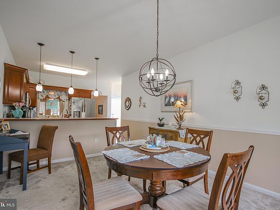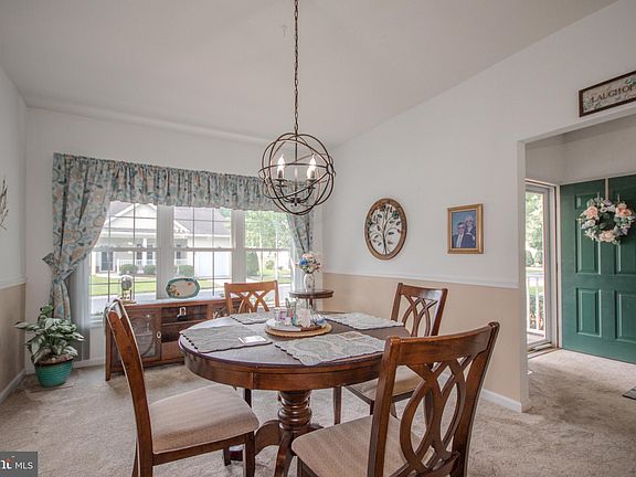 Entrance to Mallard Landing Retirement Community shows a well-planned area that is the welcoming to a comfortable environment. It shows why it is the Salisbury's # 1 retirement community. The elegant Clubhouse is surrounded by condo Buildings and cottages with the convenience of Lakeside Assisted Living on the campus. Turn right on Winding Way and 910 cottage is on your left and one of the most beautiful cottages, inside and outside awesome view of the pond. The concrete driveway leads into one car garage with finished flooring. Walking up the sidewalk with the mature landscaping meets the cozy front porch to watch the sunset. Entering the carpeted foyer, you will find a double closet on your left and to your right is special dining area with lots of light. A breakfast bar separates the dining area and Kitchen. The kitchen features sleek, upgraded granite countertops and new backsplash, creating a seamless and polished Look. The rich cherry cabinets add a touch of elegance and warmth. Newer stainless steel appliances enhance the modern feel offering both functionality and style. The new luxury plank flooring ties everything together, providing a durable foundation for sophisticated space. The luxury plank continues to flow into the separate, Large living room with the 9' ceiling throughout the cottage. Entertaining a Larger group of friends is possible as you can open the French door leading to enclosed three season room added in 2018 with an air condition unit and ceiling fan for the summer months. Everyone will be jealous of the best view of the pond with a fountain. The door leads to an outside small deck, perfect for drinking your morning coffee. There are stairs that lead you to your backyard with beautiful landscaping. The left side of living room has hall Leading to the Spacious primary bedroom boast numerous upgrades, ensuring a comfortable retreat. The ensuite bathroom features double sinks set in granite countertops, complimented by new faucets and modern toilet. The Kohler walk-in shower, which comes with a lifetime guarantee, adds a touch of high-end finishes. A large walk-in closet offers ample storage and makes organization easy. Coming out of the primary bedroom, the hallway Leads to a second full bath with all of the upgrades of single sink with granite countertop, new faucet and new toilet. It also has walk-in shower and small Linen closet. The second bedroom, which could be great for office, or den, has double closet. On the Left side of hallway, two more closets for more storage. There is also a pull down ladder to attic. On the other side of cottage by garage door is the utility room with new stack washer & dryer with extra sink and drying space available. Another door to outside, so you don't have to come through other rooms to take off shoes and reach the kitchen. The overall design of this cottage combines functionality with the high end finishes for a truly exceptional cottage for retirement living. Mallard Landing is Located 30 minutes from MD beaches, numerous golf courses, cultural event at two universities, several waterways for fishing, boating, sailing and swimming. The Clubhouse has numerous events and activities, dining room plus additional pub and bar area, exercise room, and library. HOA fees are $960 monthly, Condo-Coop fees are $420 Monthly and individual meal plan for minimum of $180 monthly. Property is being sold AS IS. Make an appointment to see this retirement cottage and community today.