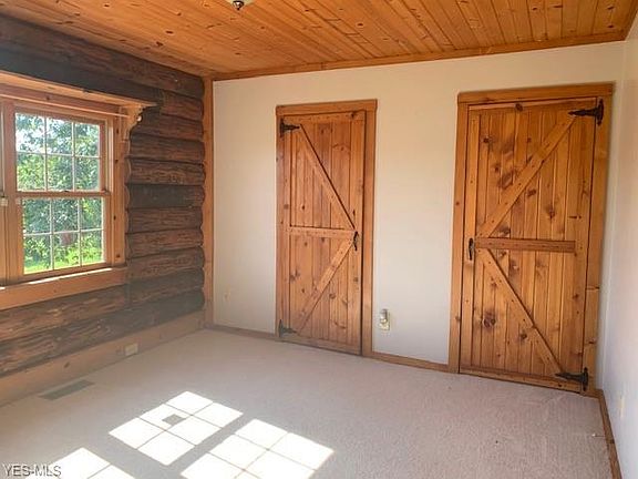 Amazing view of the beautiful countryside from this custom built, hand-peeled log home on 12+ acres. This home has a great open floor plan with a large family room with vaulted ceilings and an impressive stone fireplace. First floor master bedroom with full bath and 2nd bedroom with its own private bath. Custom built pantry, z-buck doors and cabinets throughout. Wrap-around deck that you can enjoy watching the wildlife right in your back yard. Walk-out waterproofed basement could easily be finished for more living area. Complete log restoration recently completed. Mature orchard with apple, pear and peach trees. Small stable for livestock. Roof, water softener, furnace, hot water tank, pressure tank all approximately 4-5 years old. Move-in ready and immediate possession. All minerals and one-year home warranty will transfer to new owner.