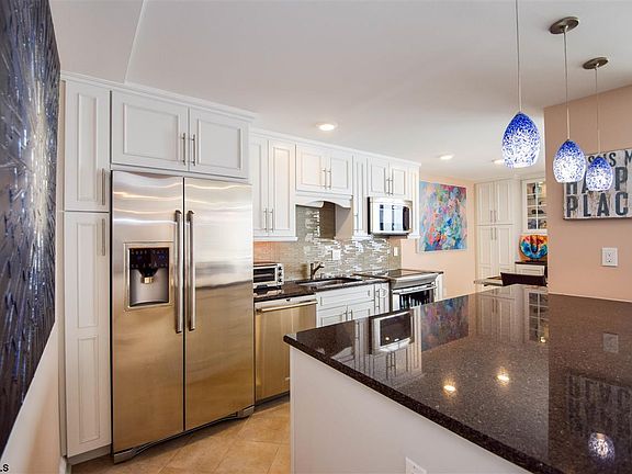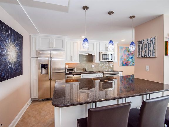 Truly Margate's finest Penthouse Top Floor unit! This Penthouse 2 bedroom, 2 full bath unit epitomizes luxury! Upscale ocean living in this distinguished and completely renovated residence atop the sky. Sensational views of the Atlantic Ocean and southern skylines of Margate, Longport & Ocean City. The impeccable interior boasts an impressive fully loaded custom kitchen with huge island and Electrolux top-of-the-line stainless steel appliances, custom bar with lighting, full dining room, open living space, master wing, two designer full baths with the finest plumbing fixtures, remote control ceiling fans throughout all rooms, laundry room with newer washer and dryer. Step outside and enjoy the large terrace overlooking the ocean. Beautiful custom furniture negotiable. Relax & fall in love with this true beachside lifestyle with the luxury of a full service premier building and 5-star amenities including heated oceanfront pool, full fitness center, recently renovated hallways, beautifully appointed lobby and clubrooms! Parking included. One-of-a-kind masterpiece!