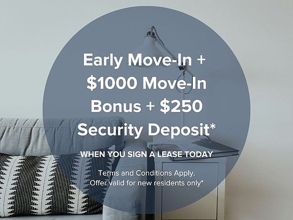- Special offer! Early Move-In + $1000 Move-In Bonus + $250 SD - Move in this month and you may qualify for our incentive.
