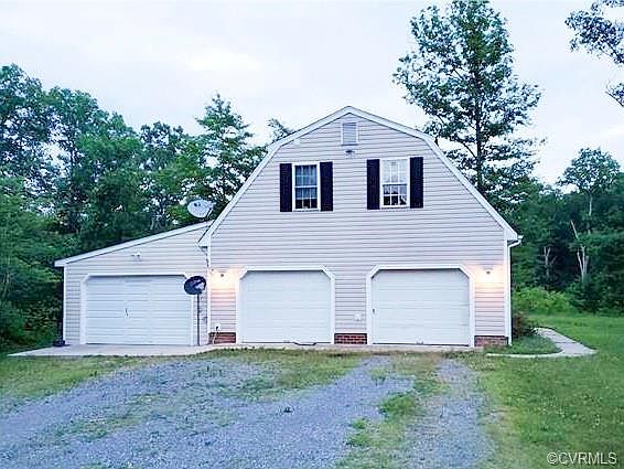 Great opportunity to buy 10 acres, live on the property while building your dream home! This 10 Acre lot located in King William County MINUTES from HANOVER LINE and town. Oversized 2 car garage with a cozy 1 bedroom apartment above it. Adorable one bedroom, one full bathroom, kitchen area with bar top, and family area. Access to the lower level over sized 2 car garage with an additional attached LARGE garage with pedestrian door for EXTRA STORAGE built only approximately 3 years ago. This property is served by 3 bedroom conventional septic system. The small shed conveys as is. So much potential or even rental potential!