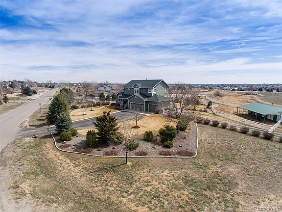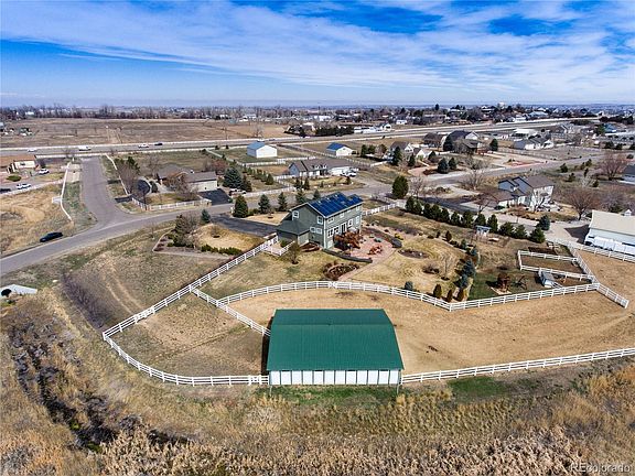 Acreage, Views, professionally landscaped with horse barn/pasture, this property has it all & is impeccable! Perfect house for entertaining. Professionally landscaped yards with lighting as well as native grass that surrounds. Adjacent to open space and trails with horse access. 2 stall barn with tack room & storage room has electricity water, within fenced pasture leading to a larger fenced pasture. Fenced Animal Pen with shed & fenced chicken coop building. 3 Large gardens with outdoor plants on a watering system. Entertain inside or out on the beautiful deck & covered patio with wood fire pit. Amazing views outside each window, a security system & Tesla solar panels that include United Power discount. 1 mile from Heritage public golf course. Your commute is easy near E 470, I 25, Hwy 76 & Hwy 85. Beautiful property just waiting for you to enjoy. Inclusions: new appliances, window coverings, Flat Screen basement TV, Pool table/cues/racks, John Deer Mower, Work Benches in shop, Play set, Chicken coop, Outdoor Animal Pen, Flower/Herb boxes with watering system, Firewood storage rack, Garage Refrigerator, Security System, & leased Tesla Solar panels.
