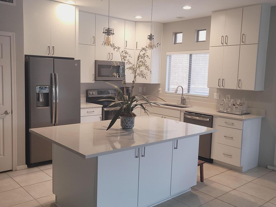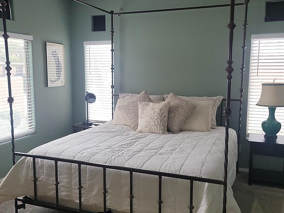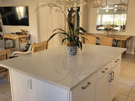 Ground level corner unit is light and airy with a remodeled kitchen creating an open great room. It features all stainless steel GE Profile appliances, pantry and an island perfect for cooking and dining. The great room opens to a patio, perfect for BBQ or just enjoying some bird watching. Nearby walkway leads to the resort like pool and spa.