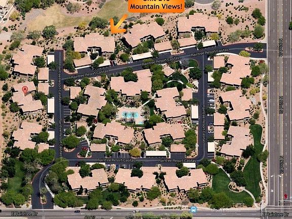 Exceptional mountain and greenbelt views abound from this fantastic 2 bedroom / 2 bath condo at the Raintree Resort Casitas in North Scottsdale. This well maintained open light and bright unit has been gently lived in and used solely as a winter getaway since the current owners purchased in 2002. Quiet interior lot with North / South exposure. Recent upgrades include interior paint and water heater. The Raintree Resort Casitas is located in one of Scottsdale's most desirable and convenient locations. Minutes to the 101 FWY shopping dining golf and medical facilities. These were originally built as condominiums not inexpensive apartments that were later converted as commonly found in the area. Most furniture and housewares available by separate bill of sale.
