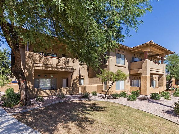 BACK ON MARKET! GRAB IT! Amazing 2 bd/2 bath with open floorplan. Could be used as 2 masters with both bathrooms ensuite. Gourmet kitchen includes top of the line stainless appliances, granite countertops, breakfast bar & is perfect for entertaining. High ceilings & tons of natural light. Location Location! This beautifully updated condo is tucked in the interior of the complex, has a large balcony and overlooks the resort style pool area which has gorgeous landscaping plus heated pool & spa. Freshly painted, new carpeting, updated appliances and 5 yrs ago AC was replaced. All of this plus a 1 car garage with plenty of room for storage (1st garage closest to the unit entry), guest parking is close and plentiful. Convenient to 101 freeway, shopping, West World, dining and recreatio