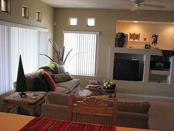BEAUTIFUL 2nd Level MIRAGE-BUILT CONDO GORGEOUS VIEWS of Pool from Balcony; of Mountains from Bedrms. RobbStucky/Contemporary blend decor with light Southwest Rustic Accents: IT WORKS WONDERFULLY! 2 MASTER SUITES. TVs in LIV RM and Master BR. OPEN KITCHEN W/BREAKFAST BAR. WIRELESS ROUTER (HiSpeed Cable avail $30-50/mon). LARGE COVERED PATIO. TRANQUIL VIEW OF POOL, LUSH GREENERY, JUST STEPS FROM THE HEATED COMMUNITY POOL/SPA. Intimate Resort-like Community close to shopping, the McDowell Mountains, the 101. 7 minutes from 7 golf courses! High Season includes all utilities. Tenant pays electricity/phone/Internet off season. EXTENDED BASIC CABLE INCLUDED. Brokered And Advertised By: WEST USA Listing Agent: MARTY and ELLEN Team