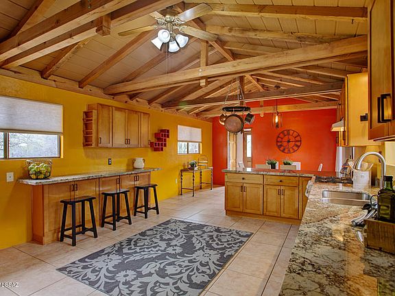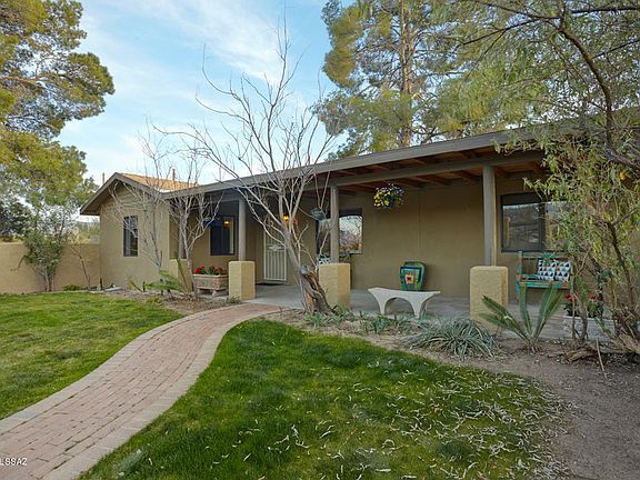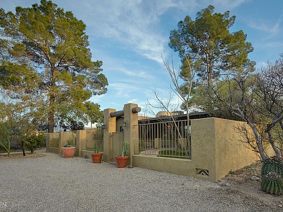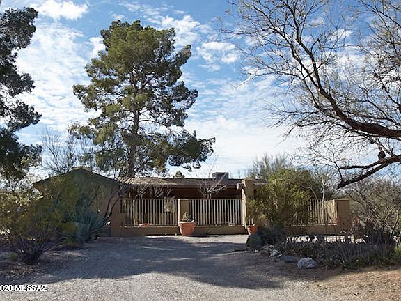 Imagine a BUNGALOW...now, COME SEE ONE! 1925 sf oasis in desert nestled towards back of 2.86 DIVIDABLE acres; rare, in town yet secluded from view by thick Sonoran desert vegetation, surrounded by TREES, GARDENS, patios & welcoming COURTYARD for intimate gatherings, solitude. CHARMING 4 LARGE BR split, 2 BA home EXUDES CHARACTER w/exposed beams, open floorplan, ceiling fans, bkfst bar; brick, wood-burning fireplace; GRASS/FENCED BACKYARD. New water heater, 1 new A/C. New roof & HVAC repairs, chimney clean. Updated kitchen, baths, x-large 2-car garage. PER ZONING, one lot can be split to sell or build. PRIVATE, registered well recently inspected, very acceptable 10 gpm; city water available to property. Existing 2-10 home warranty transfers until early June. On septic, sewer available.