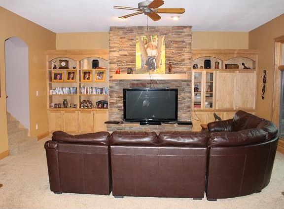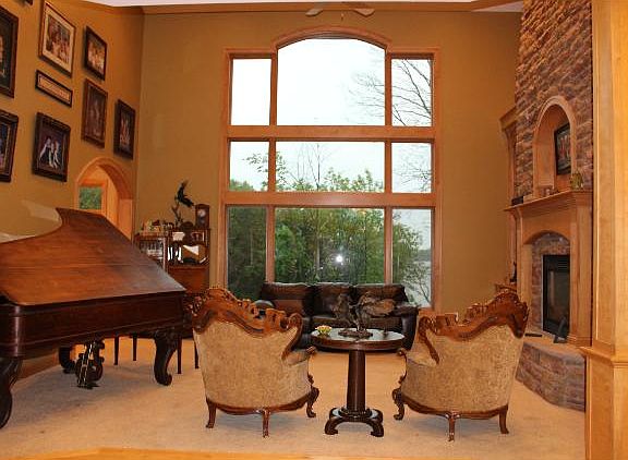 Amazing home on recreational lake w/ 5+ acres to enjoy Geo thermal heated/cooled house & separate 75x28 "garage" Multiple bolder walls & patio areas. Hot tub 4 fire places. Finishing accompanied by maple, slate, granite. textured ceilings. ample lighting