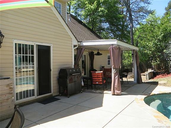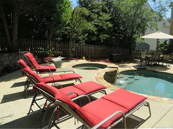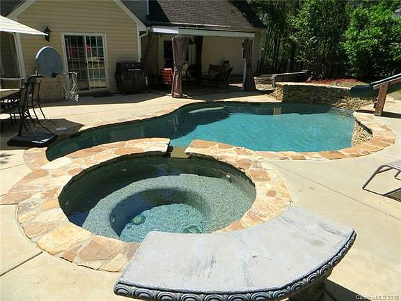 Come home to a backyard oasis that includes sparkling in-ground pool, hot tub, fire pit, multi-level patio to relax or entertain, & a covered flagstone patio. WOW! Fenced, tiered backyard has room for play and is very private. Beautiful pebble tech pool has 3 waterfall sprays, plus new heater & variable speed pump. Inside dazzles as well with dramatic 2 story Great Room, gorgeous hardwoods, designer lighting. Freshly painted interior. Amazing Kitchen boasts the biggest center island you've ever seen, granite & stainless steel counters, gas cook top, new tin ceiling & tile floor. Perfect setup to entertain w/ 2 dining areas + counter seating. Deluxe Owners Suite is located on the main level & has HWs, deep WIC & french doors to the patio & pool. Striking tray ceiling w/ recessed lighting. You'll love the charming claw foot tub in the private bath. Upstairs is a huge Bonus Room wing, and 2 secondary BRs connected by Jack & Jill bath. NEW carpet up. No HOA dues & Ft Mill Schools!