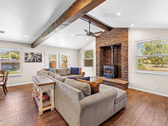 Priced BELOW market, this single-level turn-key home on 2.76 acres is a rare opportunity! Looking for a place that feels like home but also has all the fun of a getaway? With wide-open San Francisco Peak views, a newer roof, mature trees, a fully fenced perimeter, and quick access to the national forest, it's easy to see why it's a hit as a short-term rental—but it's just as perfect for full-time living or a family retreat.