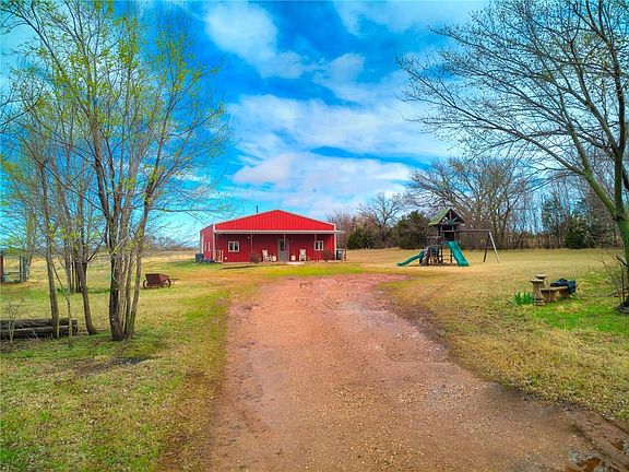 BACK ON THE MARKET! Welcome home to your Barndominium on 5 acres (mol) with large welcoming front porch, attached 24'x40' garage/workshop, Edmond address, Deer Creek Schools and in Logan County! This home has an expansive open floor plan, 3 bedrooms (no closets yet), 1 large bathroom and spacious utility room. Kitchen has an eating area, pantry & window above the sink that overlooks front yard and play area. Living room has wood burning stove and room for additional seating or formal dining area. 3rd bedroom can be used as a study and is attached to the large utility room with extra storage. Stained cement floors and tall ceilings throughout most of the home. Extras include an in-ground Storm shelter, Chicken coop & Tire swing. Simpson Rd is paved until 2 lots prior to accessing your future home, and dead ends just 2 doors to the west. Utilities: Well water, aerobic septic, Cimarron Electric, RDSi for trash & AtLink (AT&T may be available). This rare find will be gone fast!