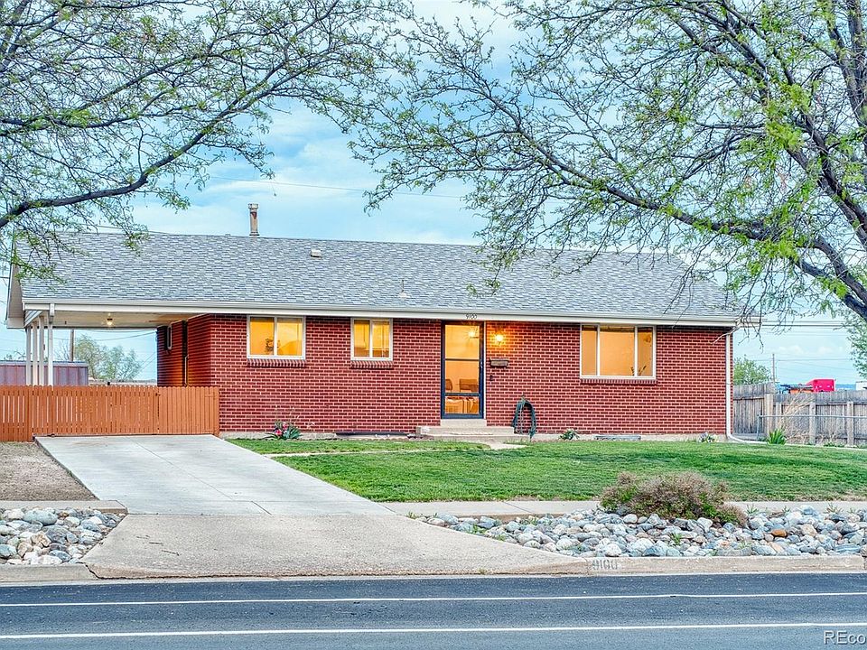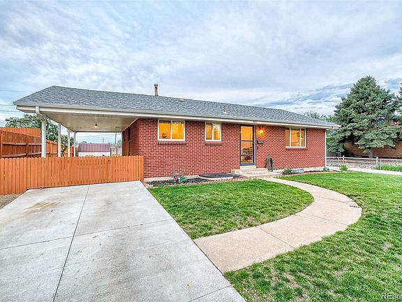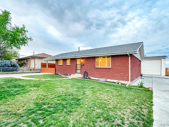 Step into this turn-key mid-century brick ranch just blocks from the N Line light rail; your direct route to downtown Denver! The unpainted wraparound brick exterior offers classic, low maintenance curb appeal, while the unique patio-port creates a covered patio or could easily be converted back to a carport. Your dream detached oversized garage gives you plenty of space for an RV, workshop, or lift, and with dual driveways, there’s room for all your vehicles and toys. Inside, you’ll find a freshly painted open-concept main floor with luxury vinyl plank flooring and an eat-in kitchen; perfect functionality for everyday living and entertaining. Downstairs, the fully finished basement showcases vintage charm with vintage wood paneling and a second kitchen featuring the original pink laminate countertop and matching pink sink! Ideal for multigenerational living, guests, or rental potential. Enjoy a spacious and private backyard, just minutes from the newly built Thornton Community Center. With great access to transit, updated finishes, and nostalgic flair, this home blends mid-century character with modern convenience. Check out the video https://youtube.com/shorts/JjchTF2U88E?feature=share