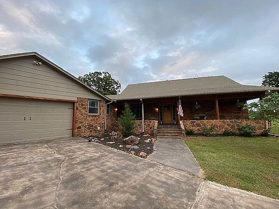 Professionally renovated home with farm house feel on 4.37 acres on Highway 66. Property has 3 outbuildings, one with a tack room, perfect for those who want a couple of horses. Beautiful contemporary kitchen with high end stainless steel Bosch appliances which include a Thor double oven with 6 burner gas stove, granite counters and a poly stone farm sink. Kitchen flows wonderfully into the living room with a pass through gas fireplace for a very cozy setting. House has two living room areas. Has a lot of natural lighting and a nice open patio with privacy fencing. Home also features a basement with safe room.