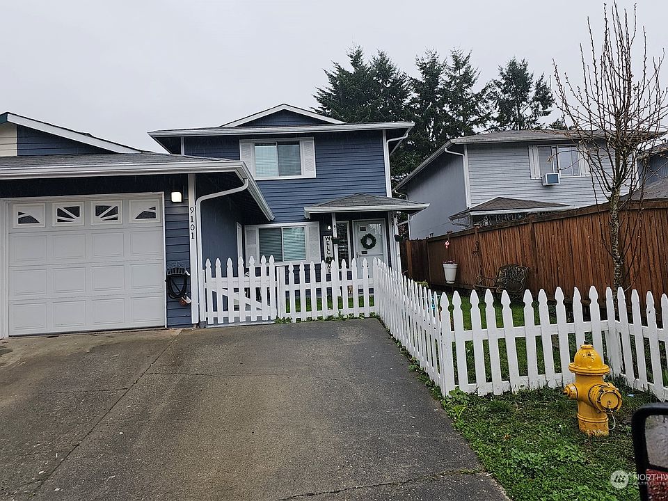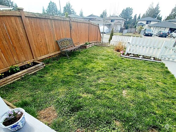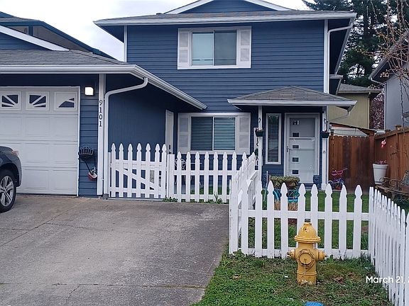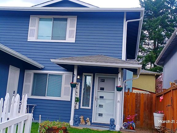 Well taken care and constantly updated unit, newer kitchen and appliances, with vinyl flooring and bathroom with shower on the main floor, newer upper bathroom with wall tile. Great covered deck area for your enjoyment, one parking garage and 1 off street parking, You could park your third car in front of the garage if its needed. Three good size bedrooms with the full bathroom upstairs. Almost no HOA the 5 dollars a month HOA covers the shared garage roof which is the only thing shared as the garage its private. No walls are connected beside that wall. This home also provides lots of natural light and mature landscaping. An open kitchen with plenty of counter space are a plus! Close to freeways, Restaurants, shopping and Boeing.