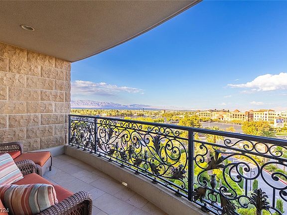 Luxury living at its finest with outstanding views of The Las Vegas Strip and Red Rock mountains. As you enter, you will see the expansive great room which blends an open-concept kitchen and dining area for easy living. The gourmet kitchen has SS Viking appliances, glass view cabinetry gracing a marble counter & breakfast bar. An office area provides a wonderful workspace while enjoying the great room atmosphere. The primary bedroom has a custom walk-in closet, a soothing jet tub and steam shower. The guest suite has a walk in shower, custom closet and amazing views.