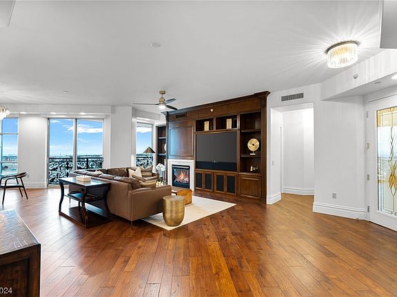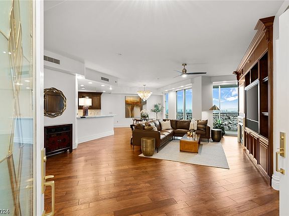 Recently refreshed fully furnished 3,100 square foot, 3 bedroom, 4 bathroom unit in One Queensridge Place, the most highly amenitized building in Las Vegas and the only luxury high rise in the Summerlin area. This upscale unit with office and private 2 car garage offers beautiful views of Red Rock Canyon and the Las Vegas Strip. With an open floor plan, large primary suite with a spa-like bathroom, and a gourmet kitchen that includes a full suite of Viking appliances, there is little this unit does not offer. The building has a barista on staff to make your morning coffee, afternoon tea, or anytime protein shake. Additional amenities include an indoor lap pool, 13,000+ square foot spa/gym, 25 seat theater, poker room, indoor/outdoor pool, and more. If you are looking to live in the most sophisticated, well-appointed full-service building in Las Vegas, you’ve found it!