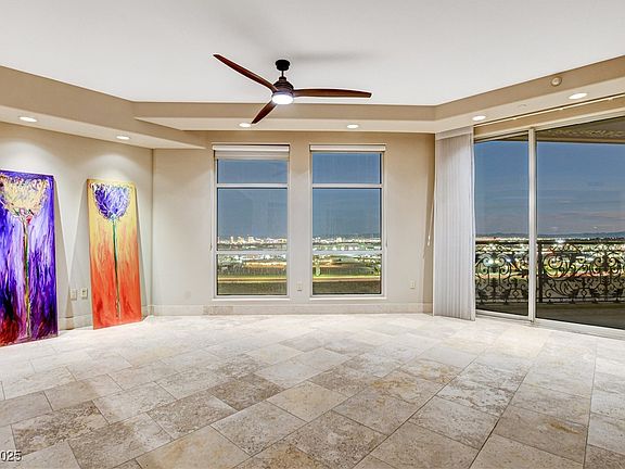 Step into this exquisite 3-bed, 3.5-bath Las Vegas residence, a true masterpiece featuring a formal dining room and versatile den & built in office. Expansive windows showcase breathtaking views of the Strip, city & mountains, while 2 generous terraces invite elegant entertaining or serene relaxation. The gourmet chef’s kitchen boasts a wet bar, 3 Viking ovens & a six-burner Viking stove. Retreat to the lavish primary suite, complete with a jetted tub, steam shower & dual walk-in closets. Guest suites offer private baths & terrace access for a refined experience. One Queensridge Place provides unparalleled resort-style amenities, including a coffee bar, outdoor pool, spa, indoor lap pool, poker room, wine cellar, theater, conference room, fitness center, Pilates/yoga studio, Roman spa, steam showers, sauna, resident casitas, private elevator, valet & an enclosed two-car garage—all within a prestigious guard-gated community. Experience the pinnacle of luxury living.