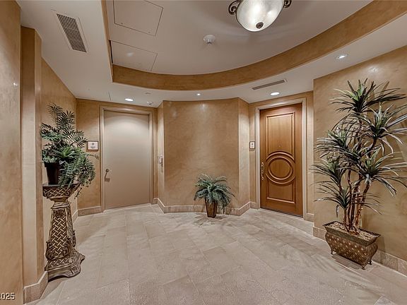 Furnished Luxury Condo w/ Unrivaled Views. Renovated end unit, perfectly positioned within the prestigious Queensridge Place. Unobstructed views of the Las Vegas Strip. 2 spacious en-suite bedrooms, situated at opposite ends of the unit. Primary suite is a sanctuary, w/ breathtaking views of Red Rock, his & her walk-in closets, bath complete w/ steam shower & soaking tub. Enclosed executive office. Travertine floor & motorized shades. State-of-the-art home automation system allows for voice-command control of lighting, HVAC, fans, TVs, shades, steam shower, & kitchen sink. Gourmet kitchen, outfitted w/ Viking appliances, granite counters, & walk-in pantry. Renovated in 2020. Underground, secured 2-car garage. Exclusive community amenities include full-service valet parking & 24-hour front desk/security patrol. Fitness center & indoor lap pool. Resort-style outdoor pool & spa. Roman spa facilities. Complimentary barista. Media room, wine cellar, & library/retreat.