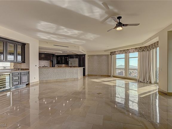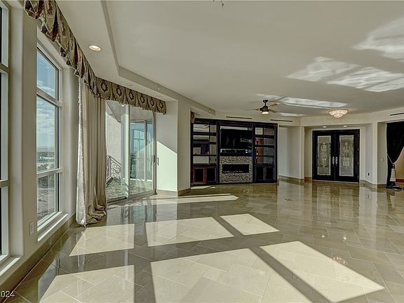 Stunning 9th floor unit in One Queensridge Place: arguably the most highly amenitized high-rise located in the NW Summerlin area. Home showcases 3856 square feet, 3 bedroom, 3.5 bathroom, separate office, formal dining room, 2 car private garage. Virtually every room in the home enjoys panoramic views of either the Las Vegas Strip, mountains/Red Rock Canyon. Fabulous gourmet kitchen w/ Viking appliance package, pull out drawers, butlers pantry, wet bar. Primary suite bedroom includes two large customized walk-in closets, grand bathroom w/ jetted tub, steam shower & large balcony. Elegant stone & wood flooring throughout, electronic custom blinds. Wrap around balcony’s bring the outdoors -in- with additional living space. OQP offers a plethora of amenities: resort style pool, indoor lap pool, fitness center, roman spa, sauna rooms, wine room, party/event room, coffee barista, EV charging stations, theater room, library, wine storage locker & private villa~casitas for guest stays.
