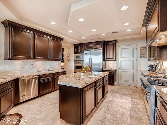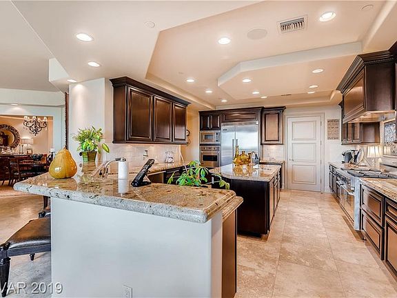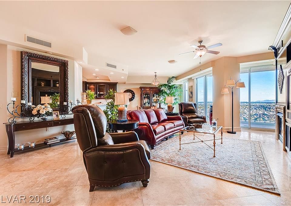 This elegantly designed home is located on the 5th floor with phenomenal views of the LV Strip & Mountains. The private elevator opens directly into the entry foyer of this split 3 bedroom 3.5 bath home, filled with elegantly appointed finishes & chefs kitchen featuring; marble floors, granite counter tops, SS Viking appliances. Direct elevator access to amenity level fitness center, spa & wine cellar. OQP offers resort style amenities.