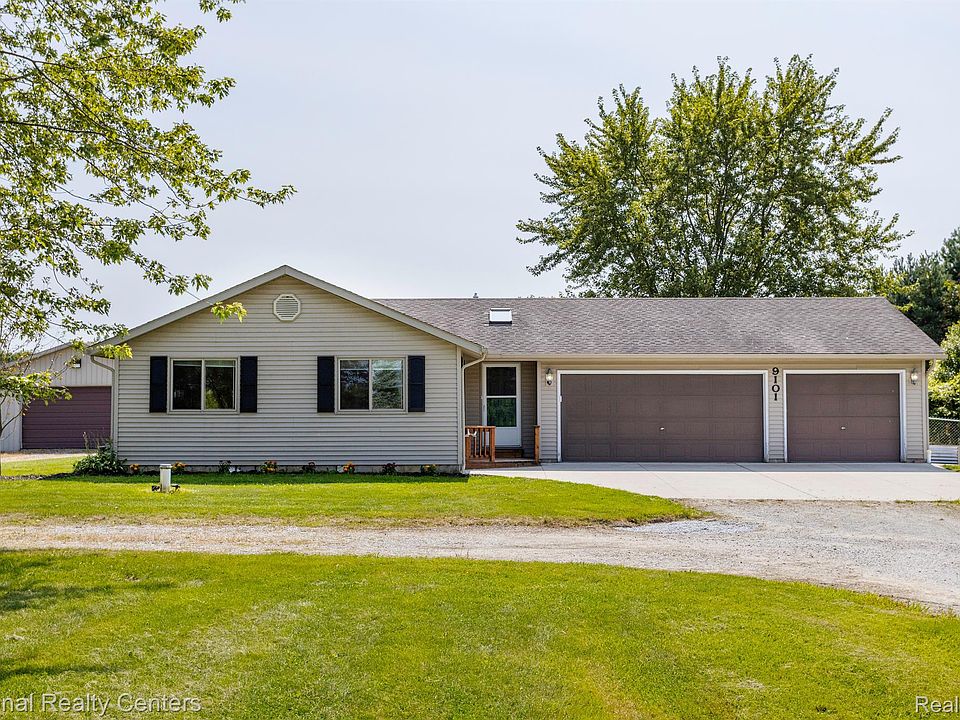 Experience the perfect blend of serene country living and modern convenience with this beautiful home on 5 acres. This peaceful retreat offers city amenities while embracing the charm of rural life. The newer (2022) chef's kitchen boasts quartz counter tops, a gas range, stainless steel appliances including french door refrigerator with dual ice makers, and plenty of counter and cabinet space. The home features three spacious bedrooms with ample closet space, including two walk-in closets. The primary suite includes a fully renovated ensuite bathroom with new vanity and flooring. Beautiful hardwood floors run throughout most of the home, complemented by professionally installed ceramic floors in the kitchen. The property is equipped with municipal water, plus a well for outdoor use. A heated insulated three-car attached garage and a spacious pole barn provide ample storage with an air-conditioned room connected to a dog kennel. Outdoors enjoy a garden shed, a pond stocked with bluegills and bass, and hunting opportunities at the back of the property. This home offers tranquility without sacrificing convenience, located close to shopping and highways for easy commutes.