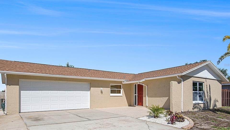 Completely and Professionally remodeled inside and out!!!! This beautifully designed modern/traditional three-bedroom, two full bath and 2 car garage with Beautiful Inground Pool home boasts many extras. Open concept design with a modern kitchen with granite counters, butcher block island, subway with glass mosaic inlay backsplashes, stainless-steel sink with gooseneck faucet, pot filler, cup wash, designer stainless hood and all energy efficient stainless-steel appliances. The high-end finishes flow throughout the house and into the new beautifully updated bathrooms with custom tile, glass mosaic tile inserts, granite and a modern rain shower with body jets and water wand. There are double vanity sinks with matching granite and waterfall faucets. The Primary bedroom has an en-suite, walk in closet and beautiful barn doors. The whole house has new upgraded doors, hardware, and trim along with beautiful wide plank flooring throughout the house to enhance the warm atmosphere of this home. The professional remodeling of this house was not just a face lift. The house has all new updated switches, outlets, and light fixtures, new water heater, updated plumbing, and a Brand-new Lennox energy efficient air conditioning/heating unit. Even the garage has been updated with fresh paint and a freshly coated epoxy floor with broadcast accent flakes. The property has a fenced rear yard with huge inground pool and pool enclosure fully screened with overhang seating area. This house does not disappoint on curb appeal either. The total remodel includes a new roof, new windows and a freshly painted house with a seeded and landscaped front and back yard along with new plant bed in front. This home has a triple slider leading from vaulted living room/dining area for combined indoor/outdoor living if desired. This is a gorgeous house in a well-established neighborhood of Port Richey. It is move in ready and WILL NOT LAST!!