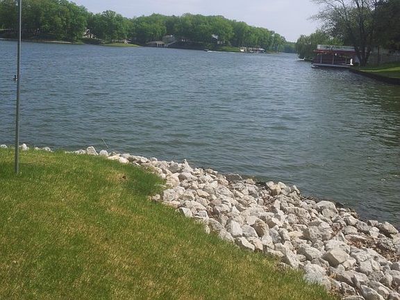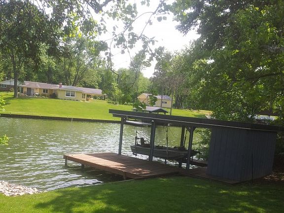 GRADUAL SLOPE EXCELLENT WATERFRONT 1.08 Acre LOT!!!4 possible 5 bdrm WATERFRONT Home with 3.5 baths! PRIVATE BEACH!! Rocked Shoreline! Screened Sunroom overlooking Waterfront! Effingham Schools! located across from Golf Course! Single slip boat dock with large swim Deck!Fantastic location for Privacy!