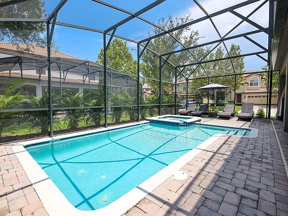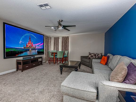 Welcome to this family-friendly retreat, a spacious 7-bedroom, 5-bathroom home that comfortably accommodates up to 20 guests, making it ideal for large families or groups. Located just 3 blocks from the clubhouse, you'll have easy access to a variety of amenities. Relax in your own heated pool and spa, perfect for unwinding after a day at the parks. Each themed bedroom is uniquely decorated to delight guests of all ages. Enjoy a variety of entertainment options in the game room, including a ping pong table, foosball, PlayStation, and Xbox consoles. With 11 TVs throughout the home, everyone can watch their favorite shows or movies. Mid-stay cleaning can be arranged for an extra fee. Conveniently located just a short drive from major attractions, Disney World is approximately 20 minutes away and Universal Studios is around 30 minutes away. This is a non-smoking property and no pets are allowed. Guests are encouraged to visit the nearest supermarket for additional supplies. No open food items are left on the property per Florida law, and all food items will be removed after guest checkout. Excessive cleaning or double cleaning is charged at $100.00.